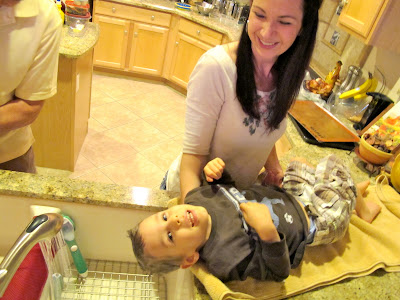He did awesome with PT, sat for a long time in the chair, took another long nap.....and discovered the buttons on the bed:) I looked over last night and his feet were in the air.....and he was grinning from ear to ear. He also enjoyed his visits with our friend Renee (who brought him a huge Mickey Mouse,) Grammy, Grams, Papa and Hope.